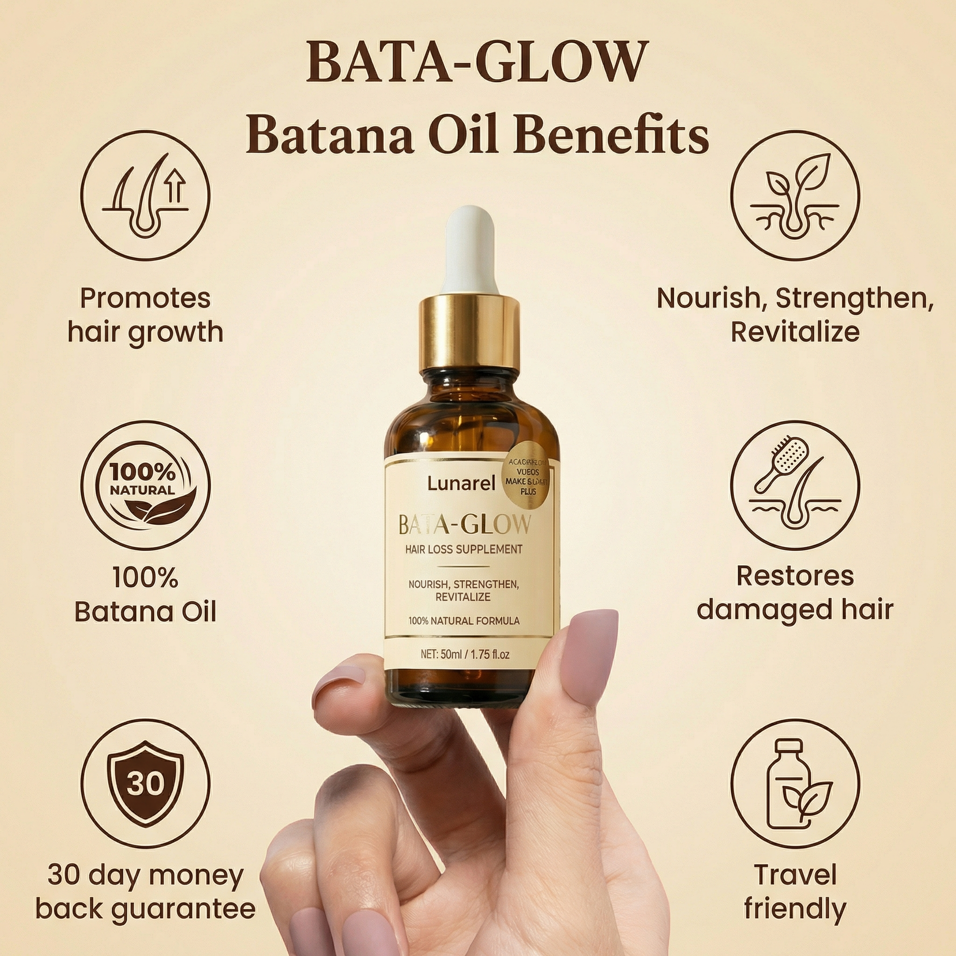BATA GLOW Batana Hair Oil helps reduce shedding, nourish the scalp, and support fuller-looking, stronger hair over time.